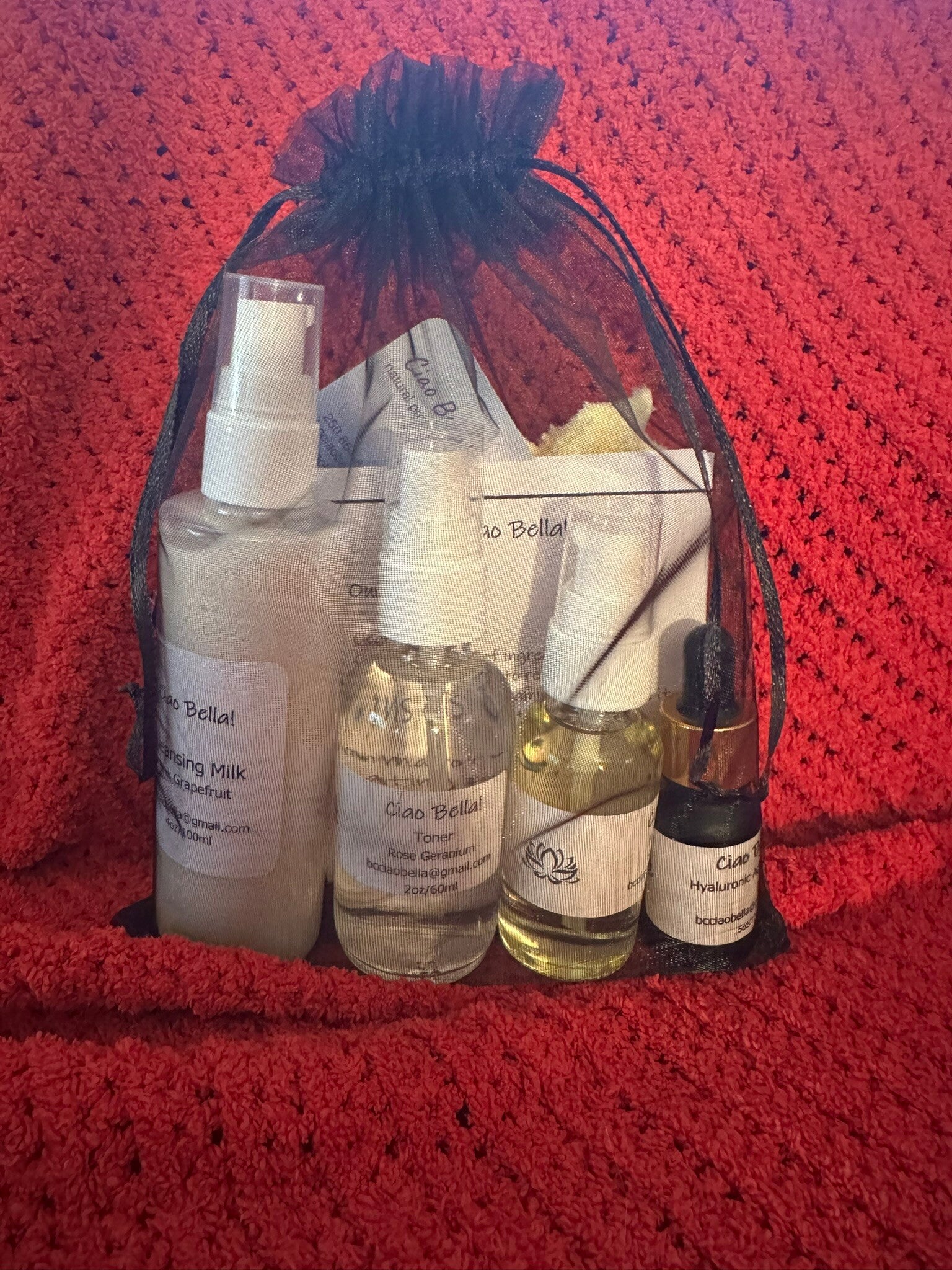These 4 products are the perfect combination for all skin types. Included is the Cleansing Milk, Toner, Hyaluronic Acid Serum and Face Serum.